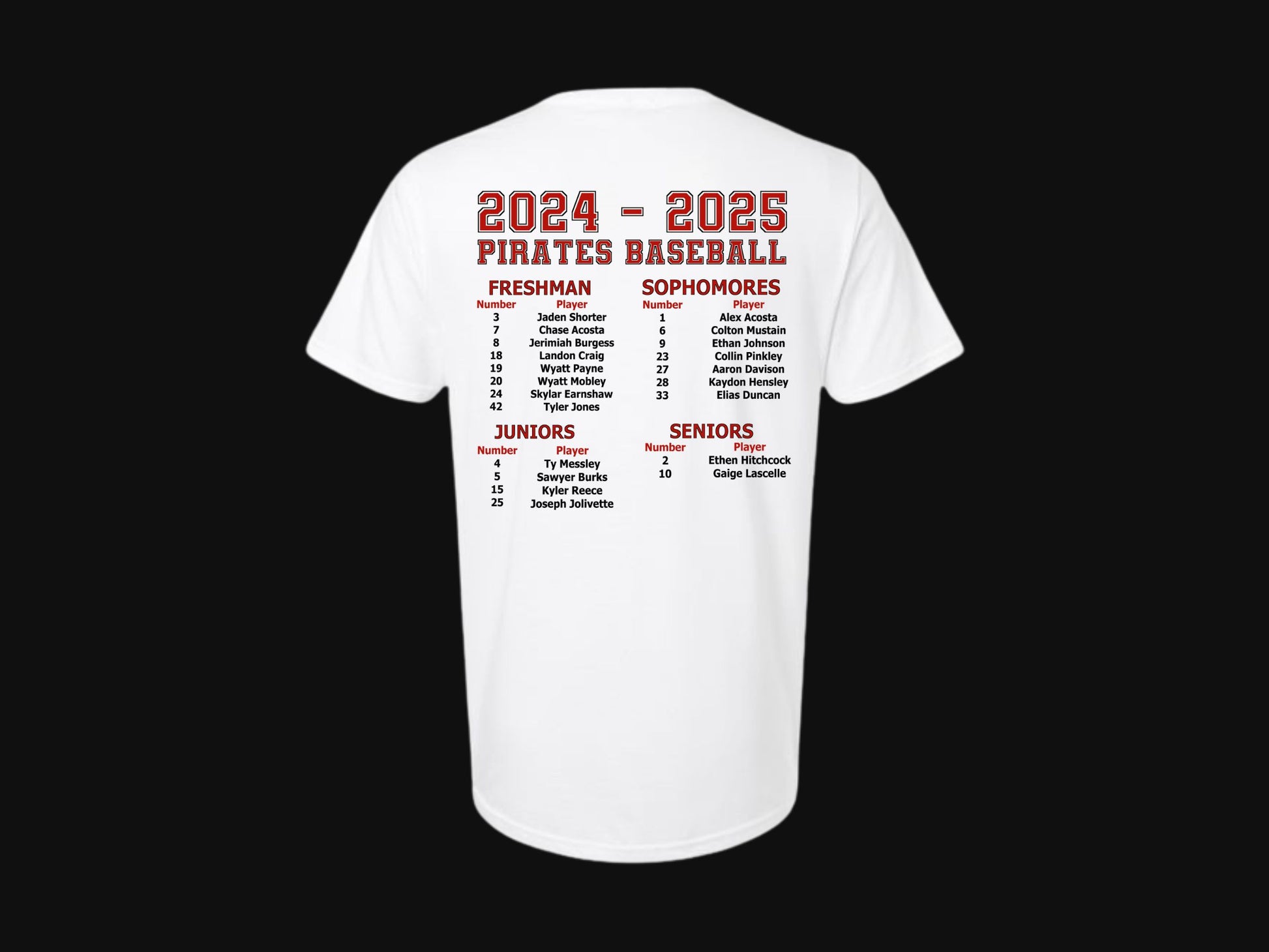 ADD ON -BASEBALL ROSTER FOR 2024-2025 TO ANY ITEM