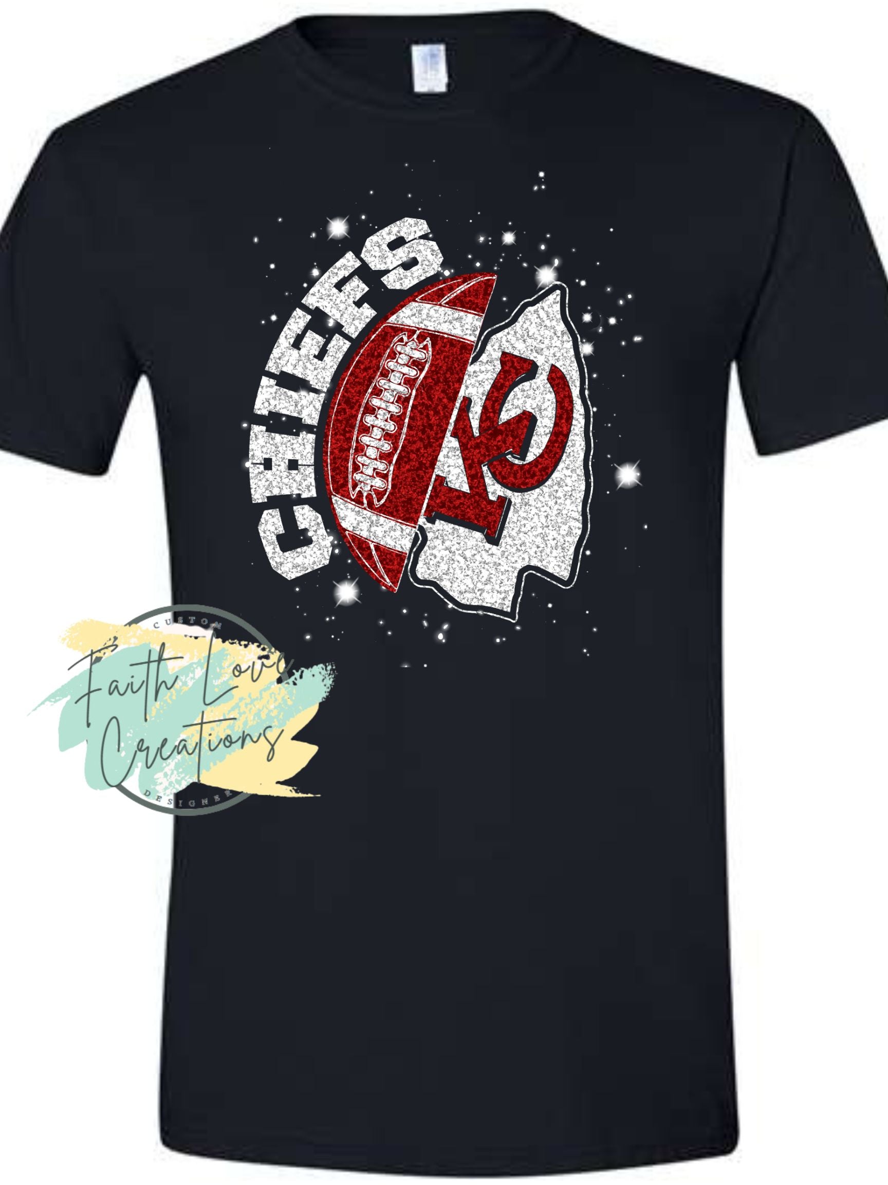 BLACK KC FOOTBALL CHIEFS SHIRT PRINTED GLITTER